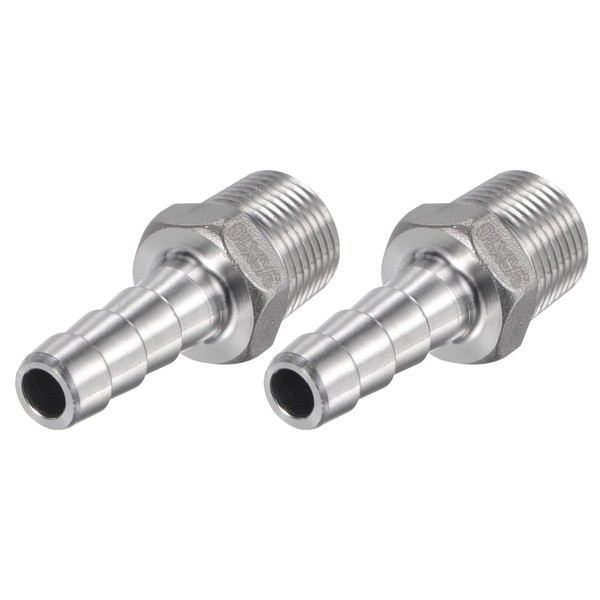 sourcing map Hose Nozzle Hose Connector 10 mm AD x 3/8PT Male Thread 304 Stainless Steel Pipe Connector Hose Adapter Water Connection Extension Pack of 2