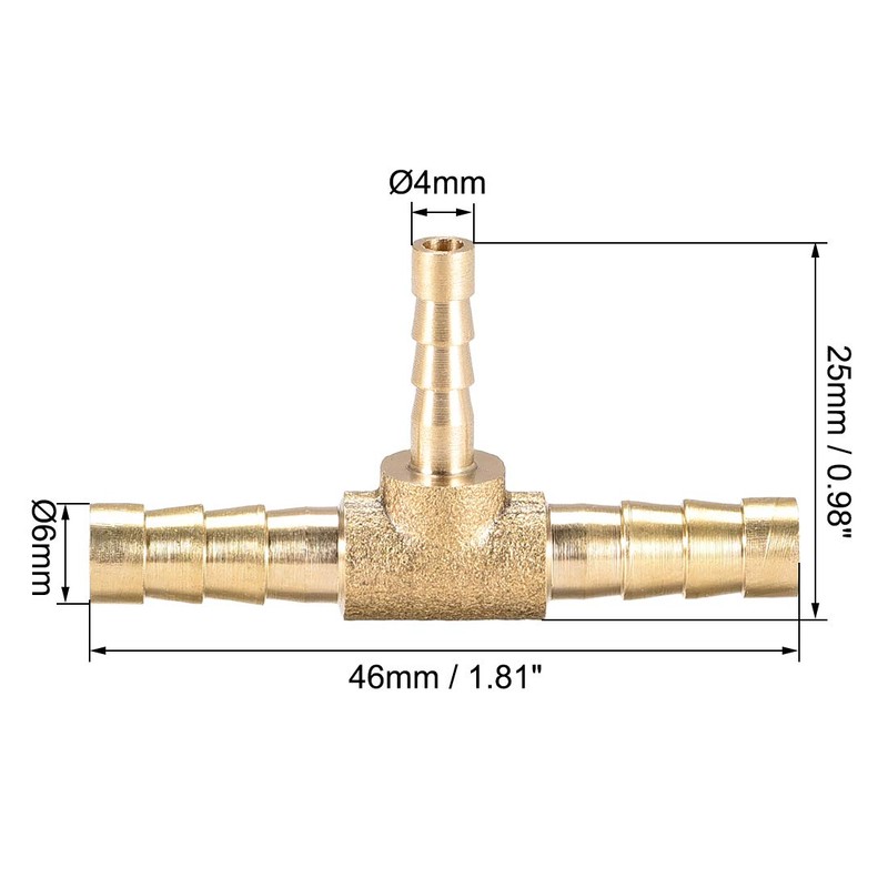 sourcing map Hose Reducer Barb Connection T-shaped 3-Way Connector 6 x 4 x 6 mm Pack of 3