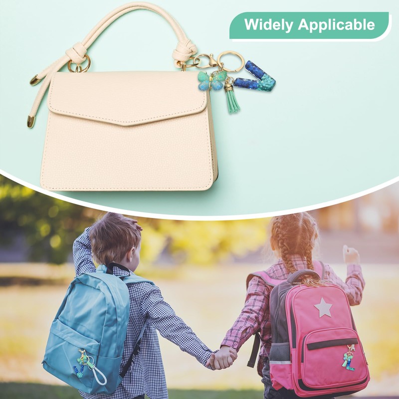 sourcing map Initial Letter Keychains, Resin Cute Butterfly Tassel Pendant Accessory for Women, Alphabet Key Ring for Purse Handbags Backpack, Teal-U