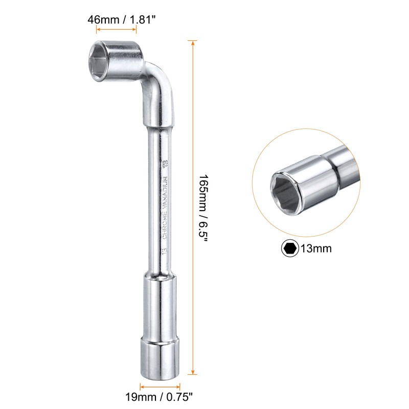 sourcing map L Shaped Angled Hex Socket Wrench 13mm High Carbon Steel Double Ended Metric 6 Point Tubular Socket Spanner for General Repairing, Pipeline, Bicycle Car Maintenance