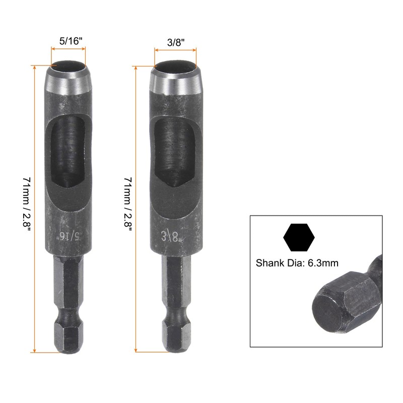 - Feature - Hex shank hollow punch work with power drills or drill presses can easily cut through multiple layers of fabric.