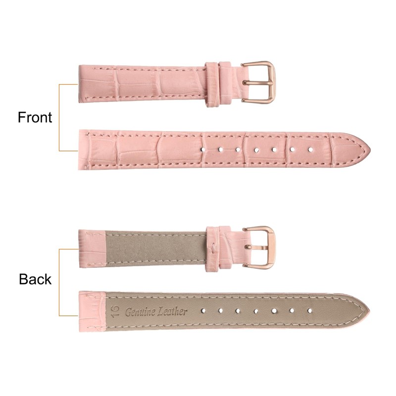sourcing map Leather Watch Band 14mm Embossed Pattern Cowhide Watch Strap Replacement with Spring Bars for Men and Women, Pink Rose Gold