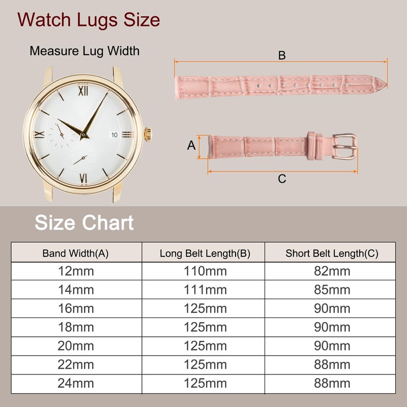 - [ Size ] - This embossed watch strap fits 14mm width watch lugs. The long belt length is 111mm, and the short belt length is 85mm.