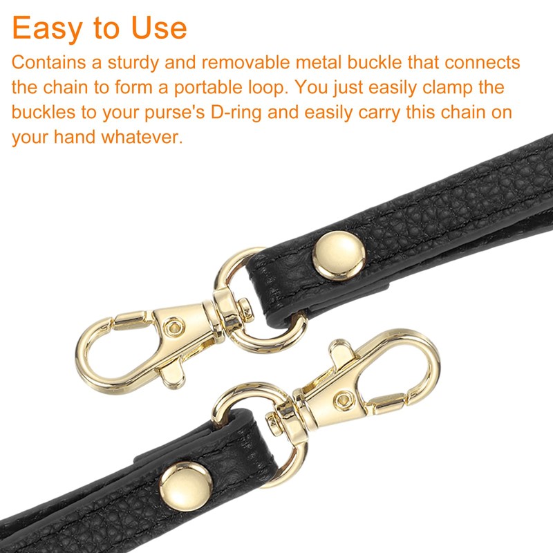 - [Easy to Use] - Contains a sturdy and removable metal buckle that connects the chain to form a portable loop. You just easily clamp the buckles to your purse's D-ring and easily carry this chain on your hand whatever. If you don't need this chain, you also can easily remove it from your purse.