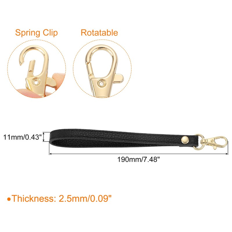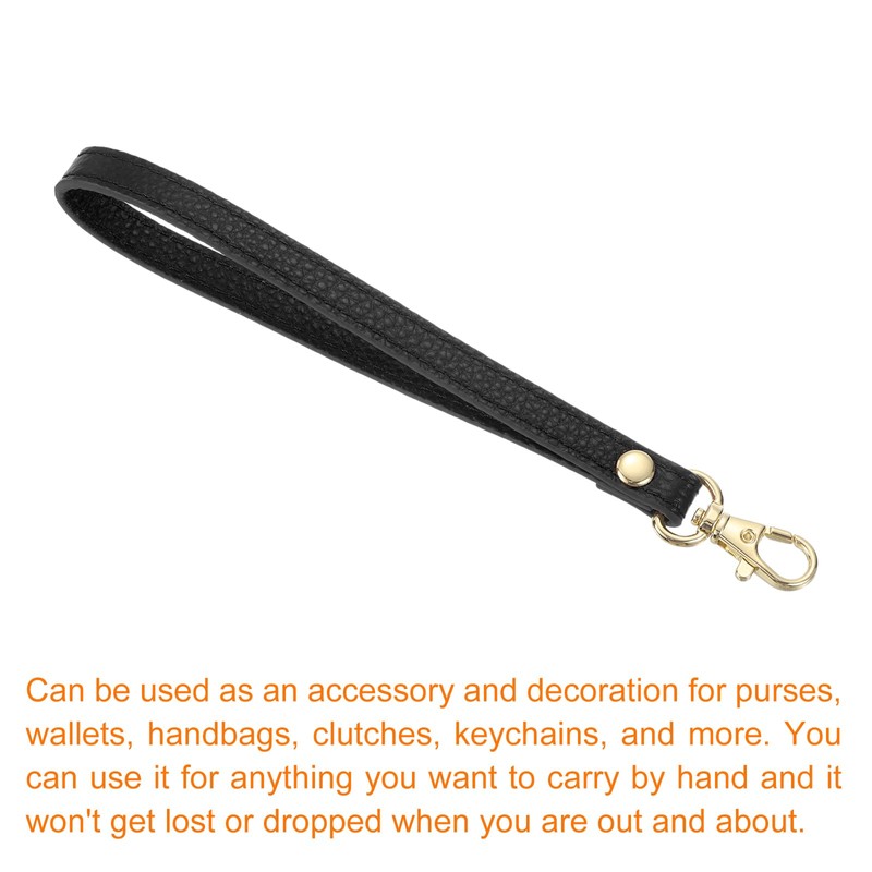 sourcing map Leather Wristlet Strap, 190mm/7.48" Hand Wrist Lanyard Leather Replacement Wrist Strap for Clutch Wallet Keychain Bag DIY (Black, Gold)