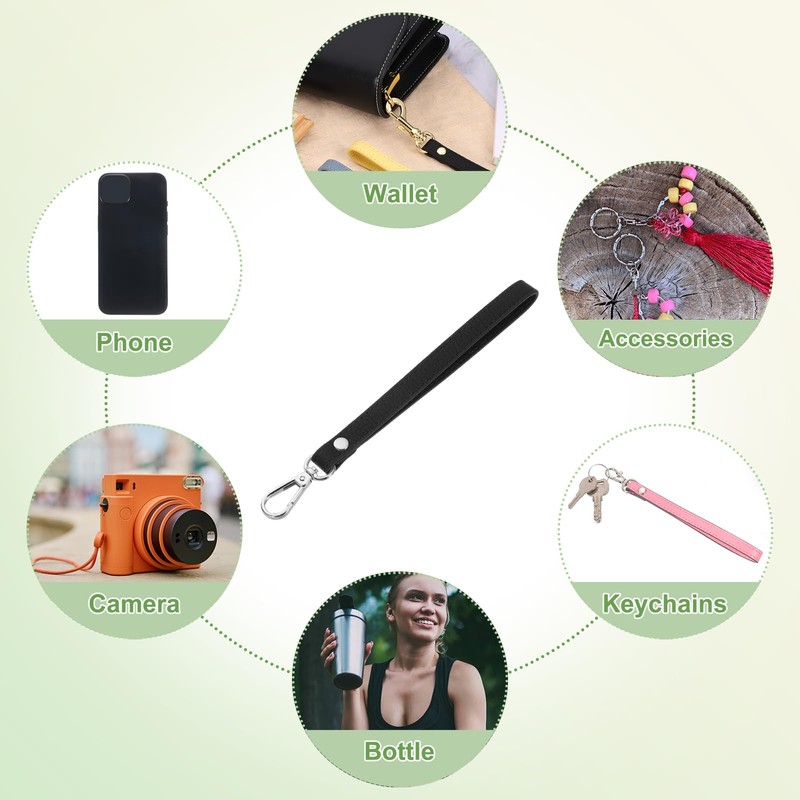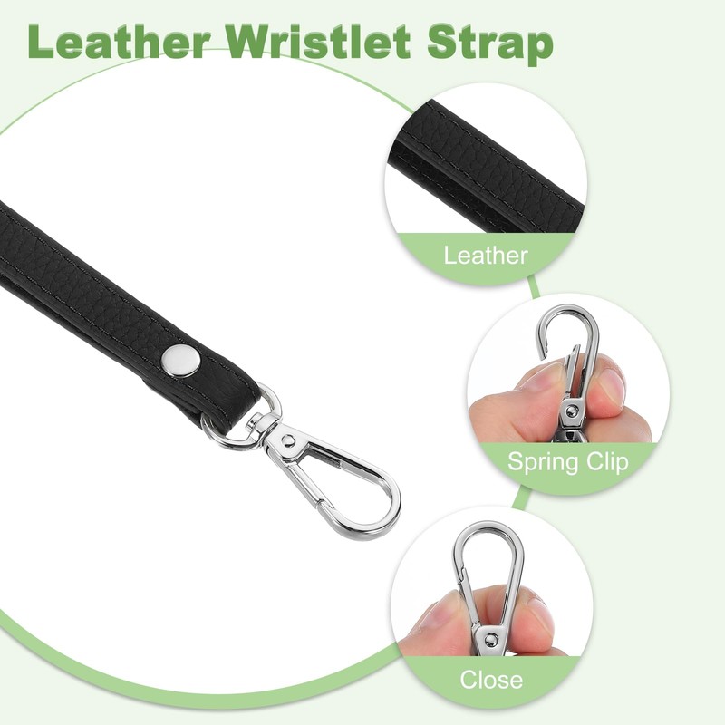 sourcing map Leather Wristlet Strap, 20cm/7.87" Long Keychain Hand Strap, Leather Replacement Wrist Strap for Purse, Clutch, Wallet, Keychain Bag DIY (Black Leather, Silver Clasp)