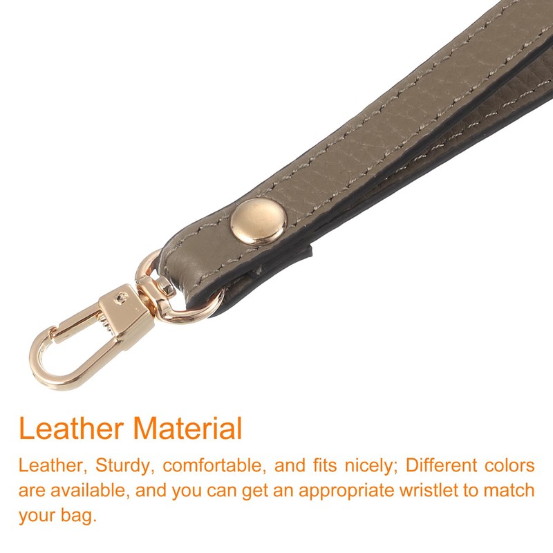 sourcing map Leather Wristlet Strap, 7.48" Hand Wrist Lanyard Leather Replacement Wrist Strap for Clutch Wallet Keychain Bag DIY (Khaki, Gold)