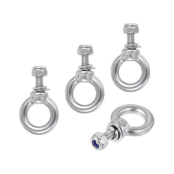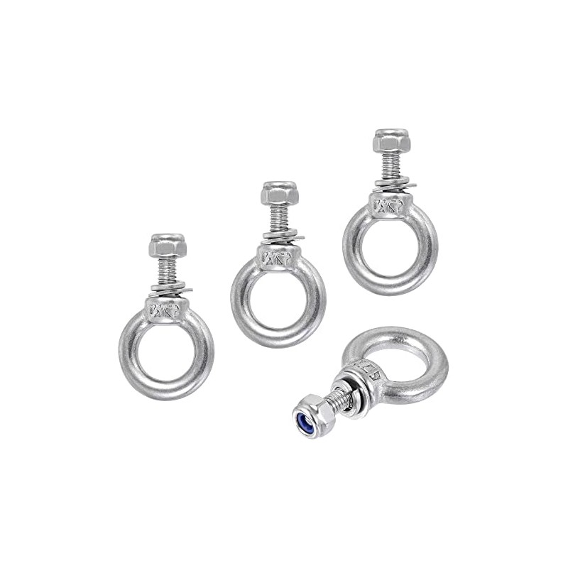 sourcing map Lifting Eye Bolt M4 x 11mm Male Thread with Hex Screw Nut Gasket Flat Washer for Hanging Securing Chain Wire Rope, 304 Stainless Steel, 4 Sets