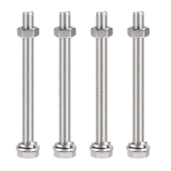 sourcing map M10 x 120mm Hex Head Screws Bolts, Nuts, Flat & Lock Washers Kits, 304 Stainless Steel Fully Thread Hexagon Bolts 4 Sets