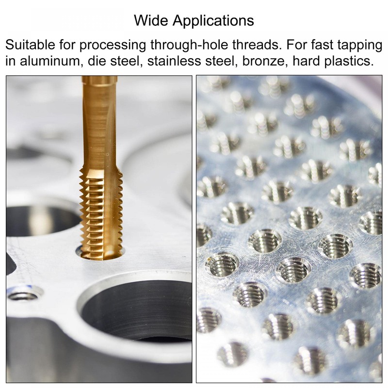 - Spiral point tap: spiral pointed design, downward chip removal, right hand thread Suitable for machining through threads and for threading aluminium, stainless steel, bronze and hard plastics. Titanium coating provides excellent corrosion resistance and wear resistance.