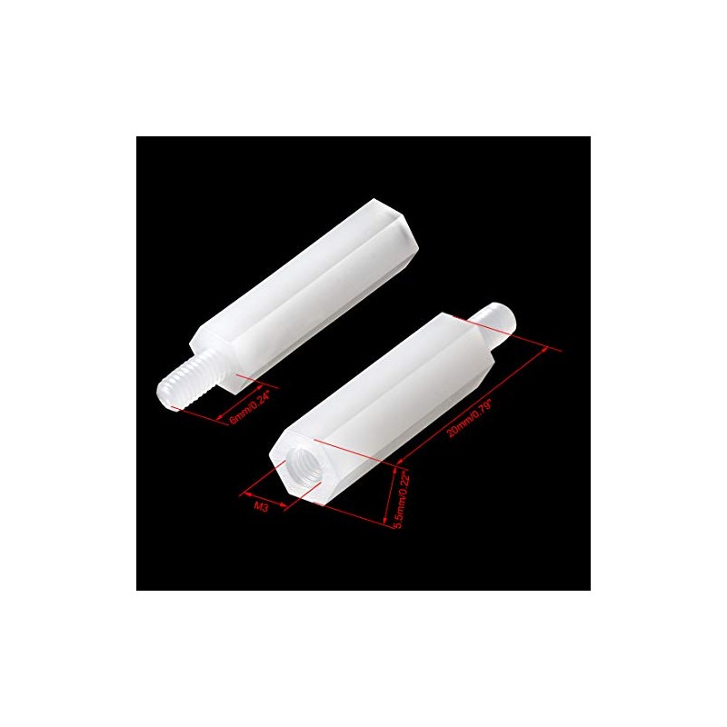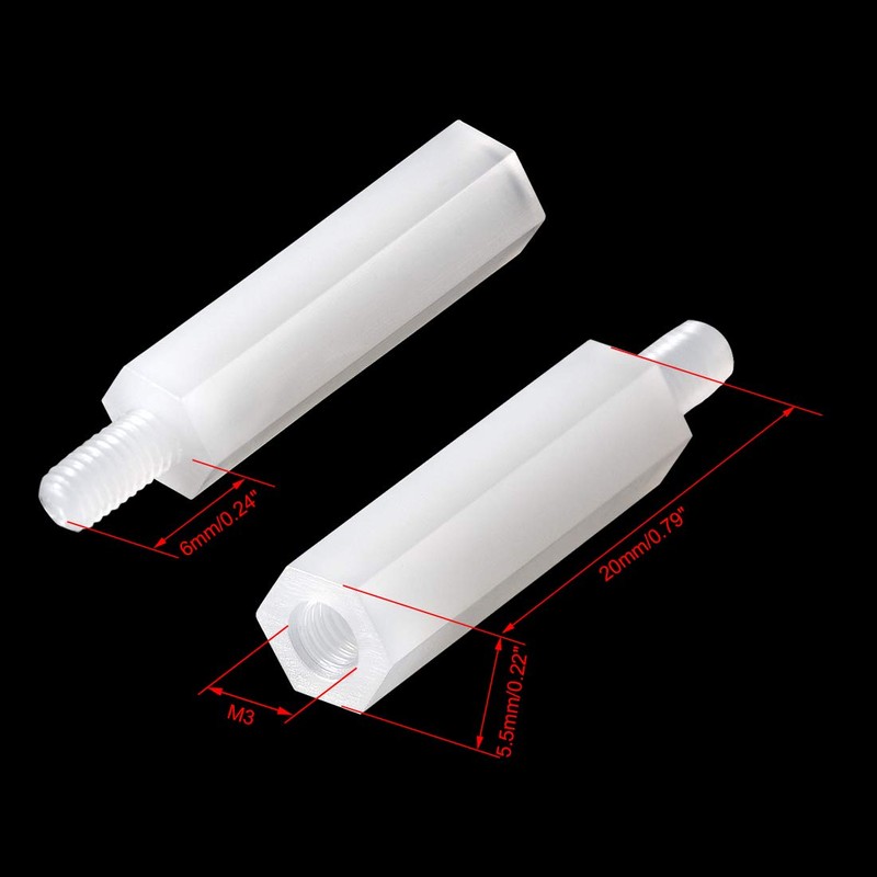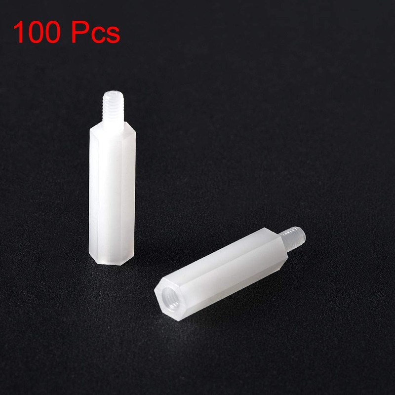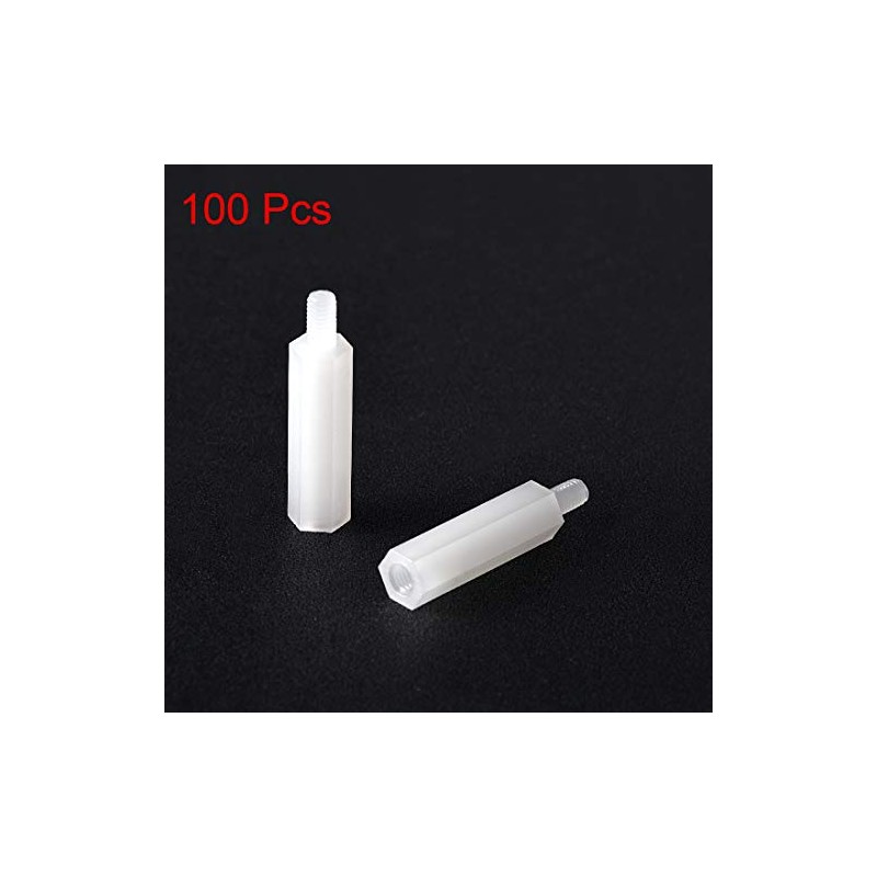 sourcing map M3 20+6mm F/M Nylon Hex Standoff Spacer Screws PCB Pillar White 100 Pcs