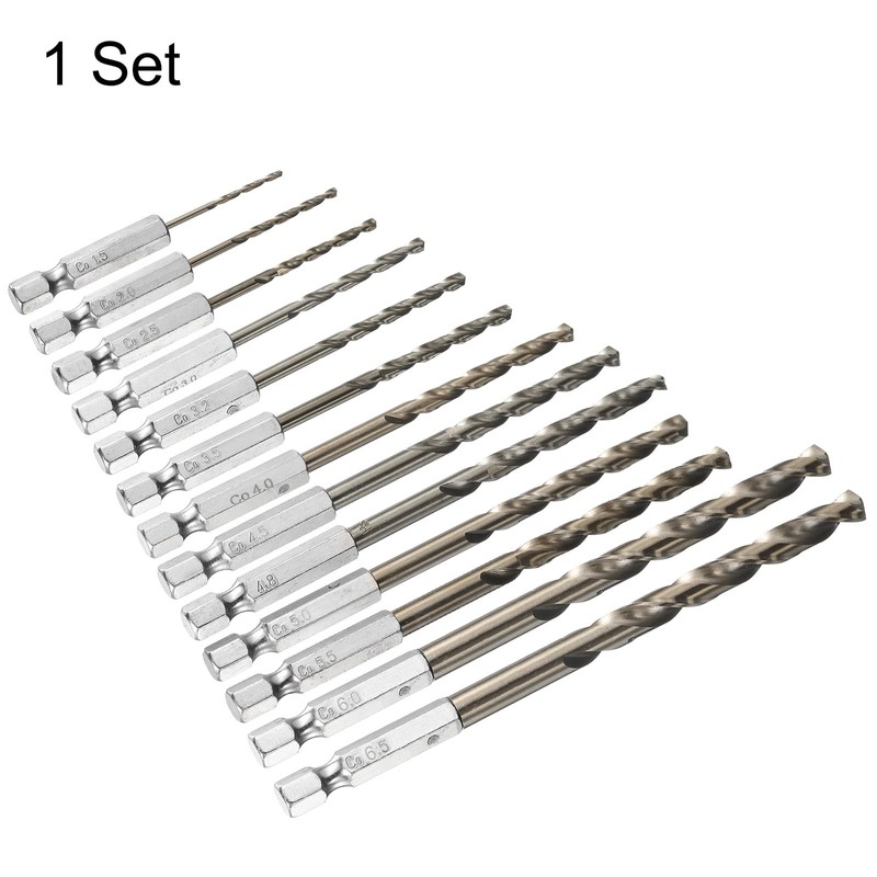 sourcing map M35 High Speed Steel Cobalt Twist Drill Bit Set 1.5/2/2.5/3/ 3.2/3.5/4/4.5/4.8/5/5.5/6.0/6.5mm with 1/4" Hex Shank Jobber Drill for Metal, Steel, Copper, Aluminum, Zinc Alloy