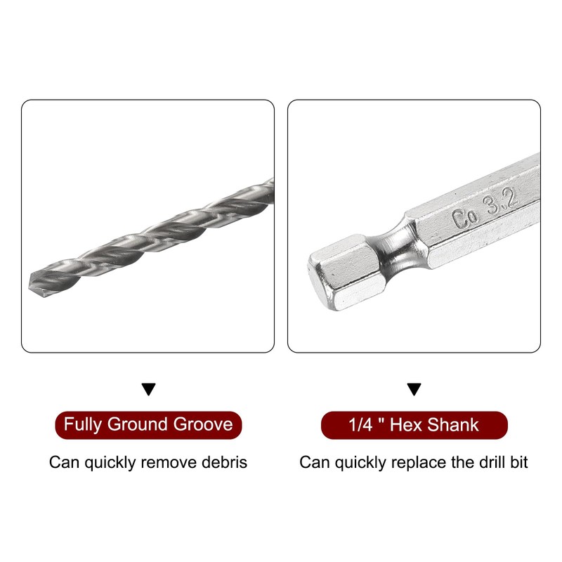 - Material - The hex drill bit is made of M35 cobalt high speed steel with sharp edge. High-temperature heat treatment makes the metal drill bit has higher hardness, better wear resistance and corrosion resistance, and longer service life than ordinary drills.