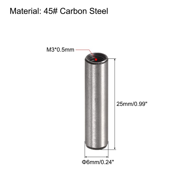 - Dowel Pin Size: 6x25mm/0.24"x0.99"(D*H); Thread Dowel: M4*0.7mm; Internal Thread Depth: 6mm/0.24"; Above Chamfering: 0.8mm; Material: 45# Carbon Steel; Style: Chamfering Flat
