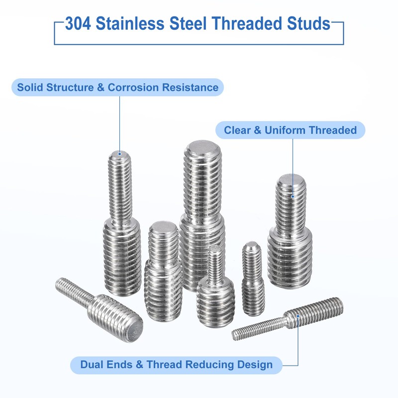 Easy Installation - A double end threaded stud has fully threading on both ends, allowing for versatile use in various applications. Designed as a thread reducer, allowing for easy adaptation and customization, making them essential for various projects.