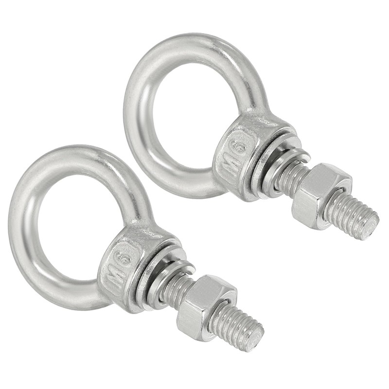 sourcing map M6 1/4"x0.79" Stainless Steel Eye Bolts Threaded Screw Eyebolt Shoulder Ring with Nuts Washers for Lifting Hanging, 2 Set