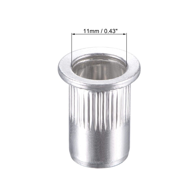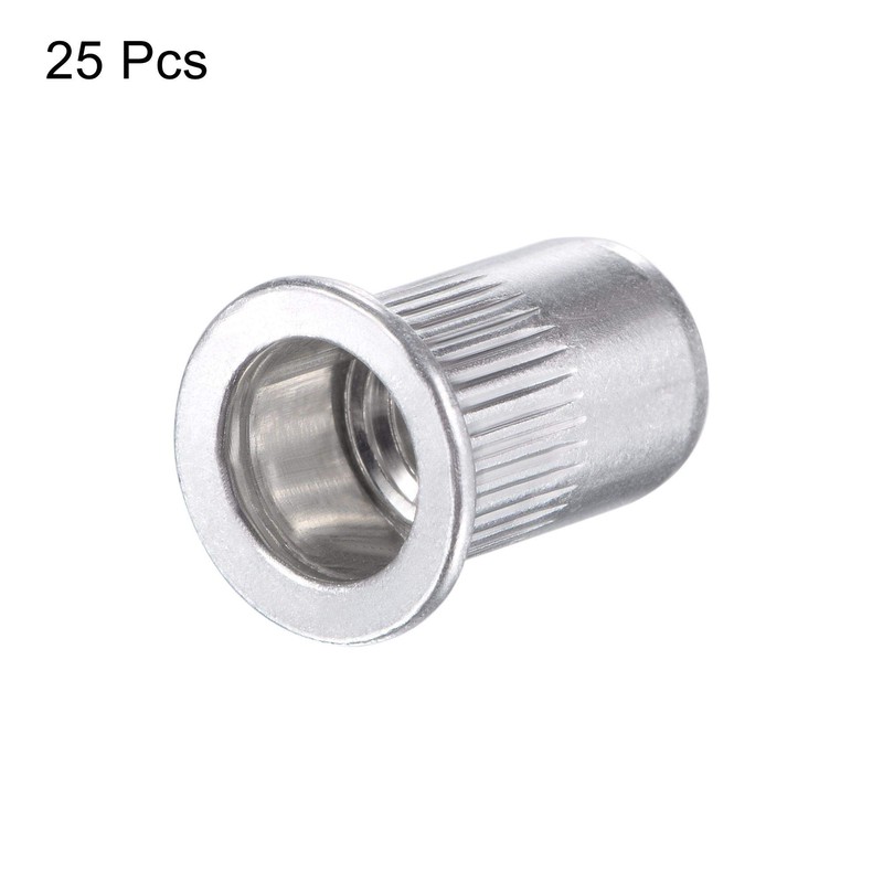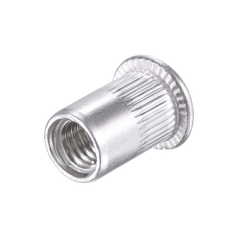 sourcing map M8 Rivet Nuts Aluminium Alloy Knurled Flat Head Threaded Insert Nut Silver 25pcs