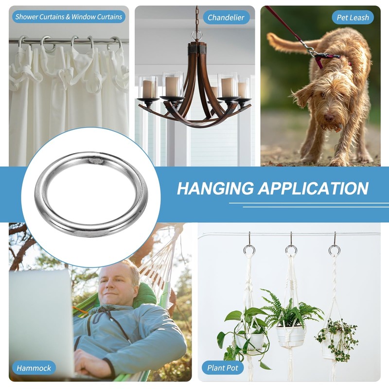 From practical to creative, these O-rings shine in endless scenarios! Securely hang hammocks, garden Slings Rope, plant pots, baskets, pet leashes, chandeliers, and etc. Good for DIY enthusiast, crafter, and outdoor enthusiast seeking a blend of strength and minimalist aesthetics.