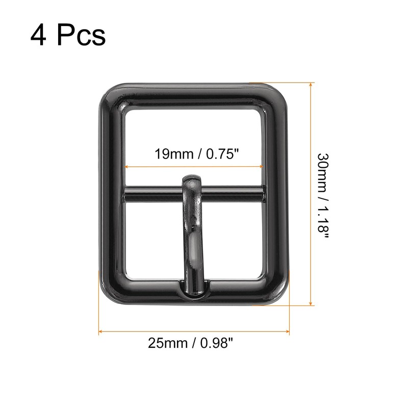 - [Center Bar Buckles] - Total Size: 30mm x 25mm x 3.6mm/1.18" x 0.98" x 0.14"(L*W*T); Fit Belt Width: 19mm/0.75"; Color: Black; Package Included: 4Pcs x Metal Roller Buckles.