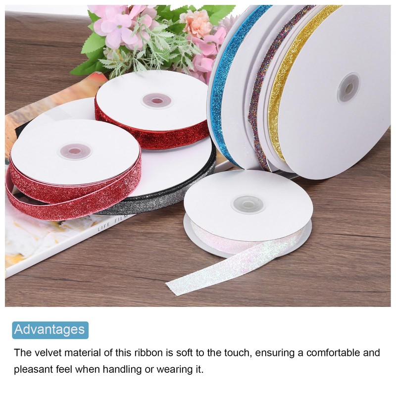 - This velvet ribbon will add an elegant and luxurious touch to your presents to tie beautiful bows or wrap around gift boxes. It applies to various craft projects such as creating hair accessories, wreaths, vases, picture frames, candle holder decorations, and more. It can also be used to create stylish chair sashes or table runners for special occasions or everyday use.