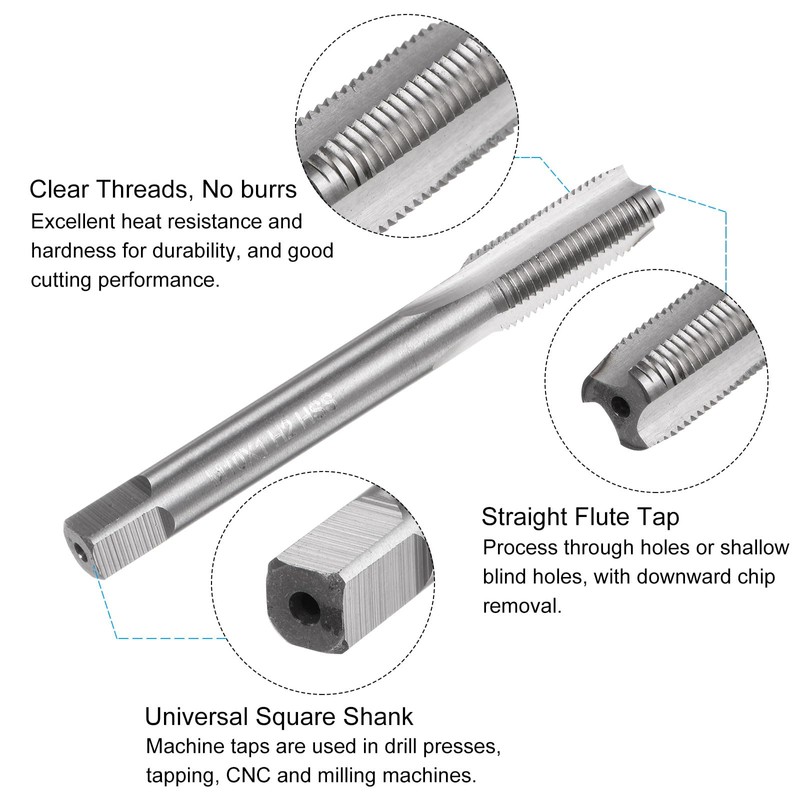 - Easy to Use: Machine taps are used in drill presses, tapping, CNC and milling machines. Use with appropriate lubricant (such as cutting fluid or oil) to get higher quality threads and more durable tap & drill bit. Not recommended for hand use and electric drill tapping.