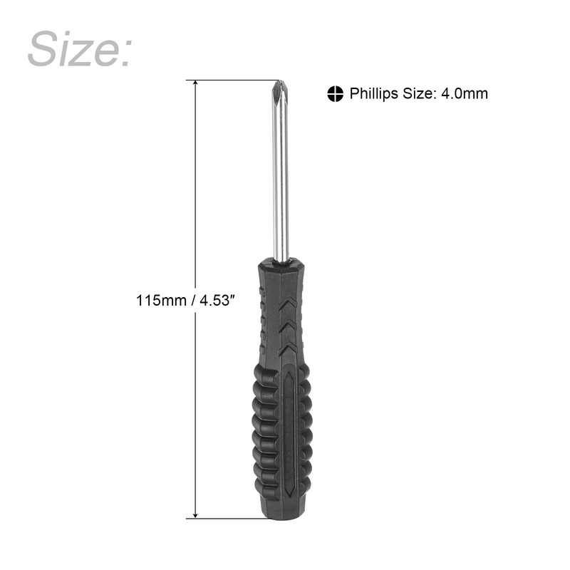 • Size - 4.0mm cross head, 4.53" (115mm) total length. This screwdriver is a small screwdriver, suitable for handling some small screws, such as those used in electronic products, glasses, watches, etc.
