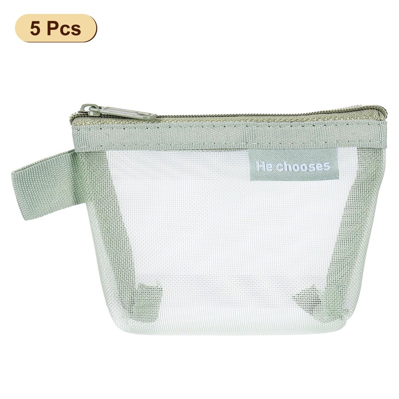 sourcing map Mini Zipper Mesh Bag 3" x 5", 5 Pcs Nylon Small Makeup Zipper Mesh Pouch Cosmetic Case Mesh Storage Bags for Earphone, Credit Card, Light Green