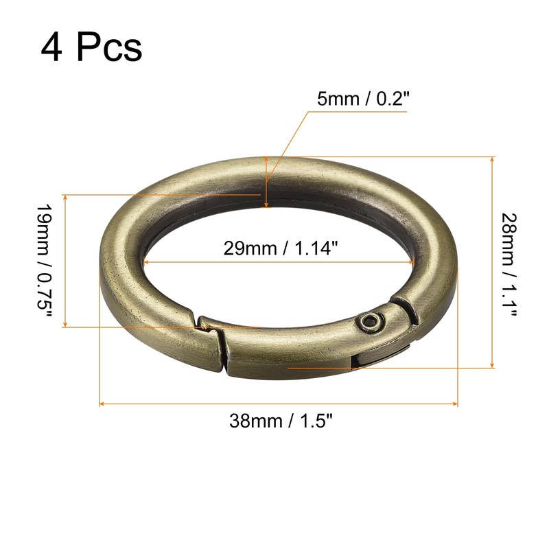 - Pocket ring: This set contains 4 pieces of bronze rings for the handbag. The overall size of the individual strap rings is 38 mm x 28 mm x 5 mm (L x W x D), with an inner length of 29 mm and an inner width of 19 mm.