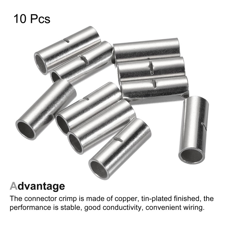 sourcing map Non-Insulated Butt Crimp Terminals 4 AWG for Electrical Wire Splice DIY, Pack of 10