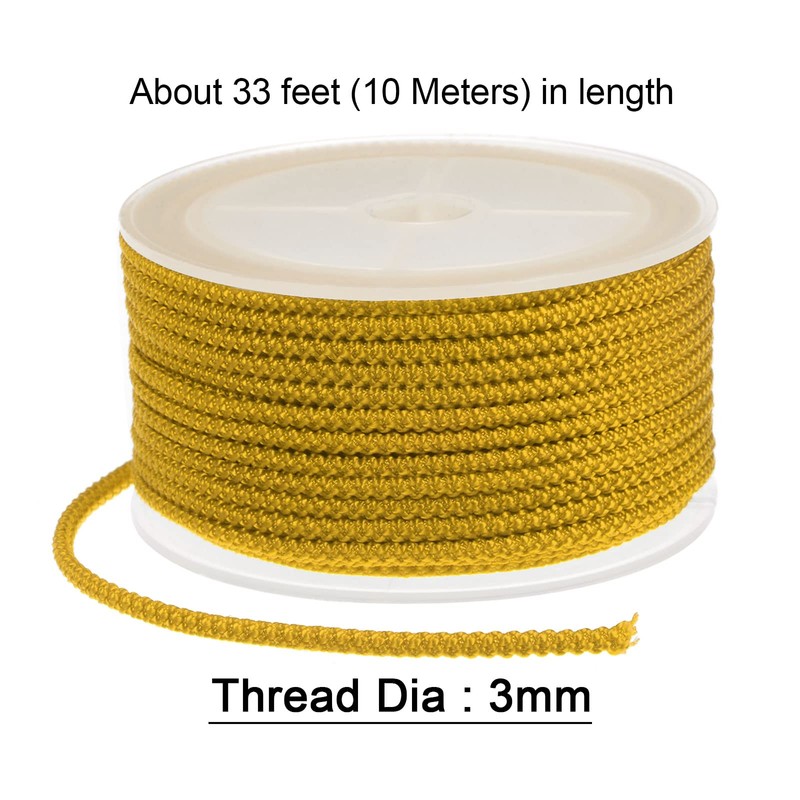sourcing map Nylon Beading Thread Cord 3mm Extra-Strong Braided Nylon String for Necklace Bracelets Jewelry Making Crafting 10M/33 Feet, Goldenrod