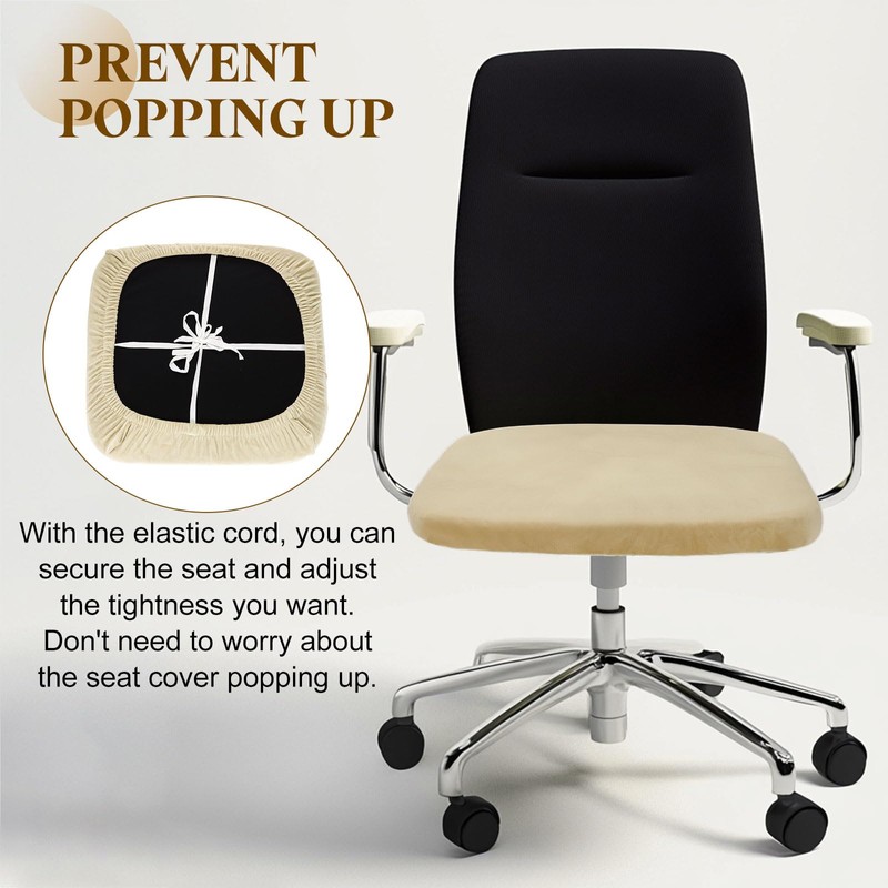 Easy to Use - The seat cover is easy to install by simply sliding it over the seat. The computer chair cover has elastic edges that can keep the cover stable and tucked into the office chair nicely. The soft chair cover has straps to tie the front, back, left, and right straps together to fix the seat more firmly. The seat cover can cover the tear, rips, and broken edges of an old chair, making it look new.