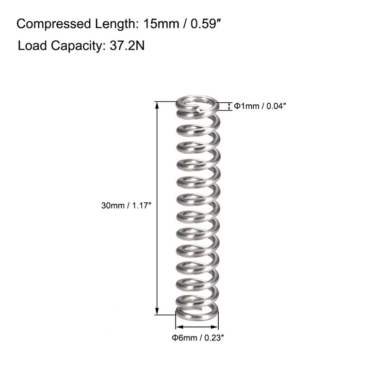 sourcing map Pack of 10 Compression Spring 304 Stainless Steel Compression Springs Spiral Spring Steel Spring 6 mm Outer Diameter 1 mm Wire Diameter 15 mm Compressed Length 30 mm Length 37.2N Load