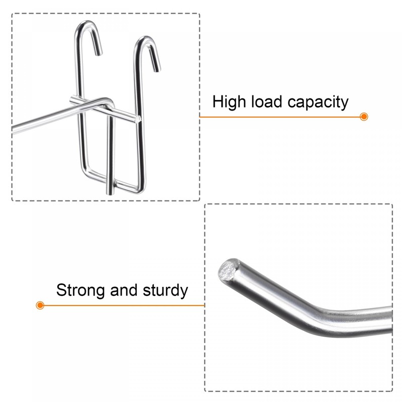 The grid wall hooks are used to organize or display your tools, crafts, retail products, etc. Great accessories for your shop, garage, office and any indoor space.
