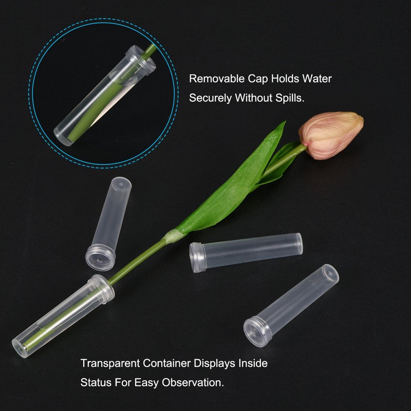 - Die PC-Blumen-Wasserröhrchen hat eine PVC-Oberseite mit einem Loch, wo Sie eine Blume einfügen können, als Hilfe zu einem einzigen kurzen Stiel. Es kann als Wasserbecken für Blumen verwendet werden, oder Sie können Blumen mitnehmen.