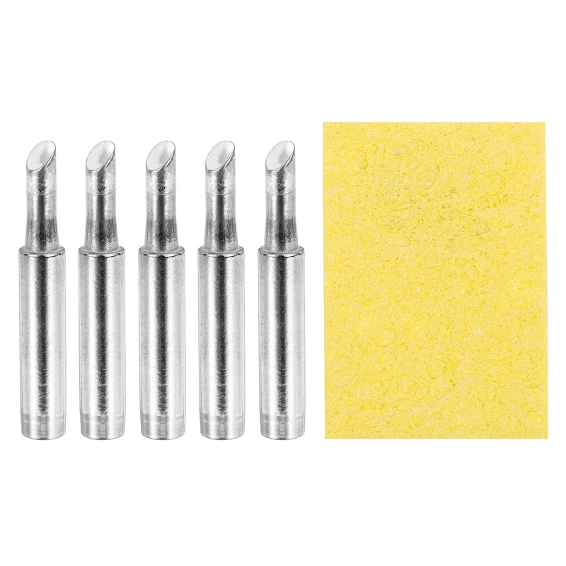 sourcing map Pack of 5 900M Solder Tips Internally Heated Soldering Tips with Cleaning Sponge Pad Replacement Welding Accessories Kit for Electrical Solder Station Tip (900M-T-4C)