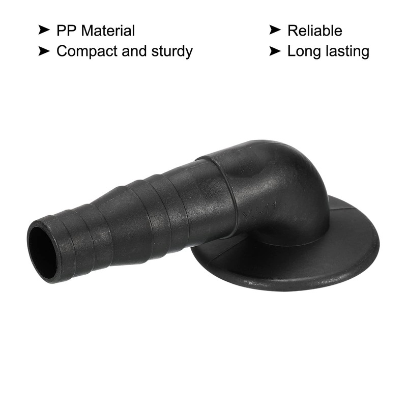 - Material: PP; colour: black; buckle size: 19 mm/0.75 inches; outer diameter: 39 mm/1.54 inches; barb outer diameter: 13 mm/0.51 inches, suitable for drain hoses with inner diameter of 14 mm-16 mm; total height: 75 mm/2.95 inches