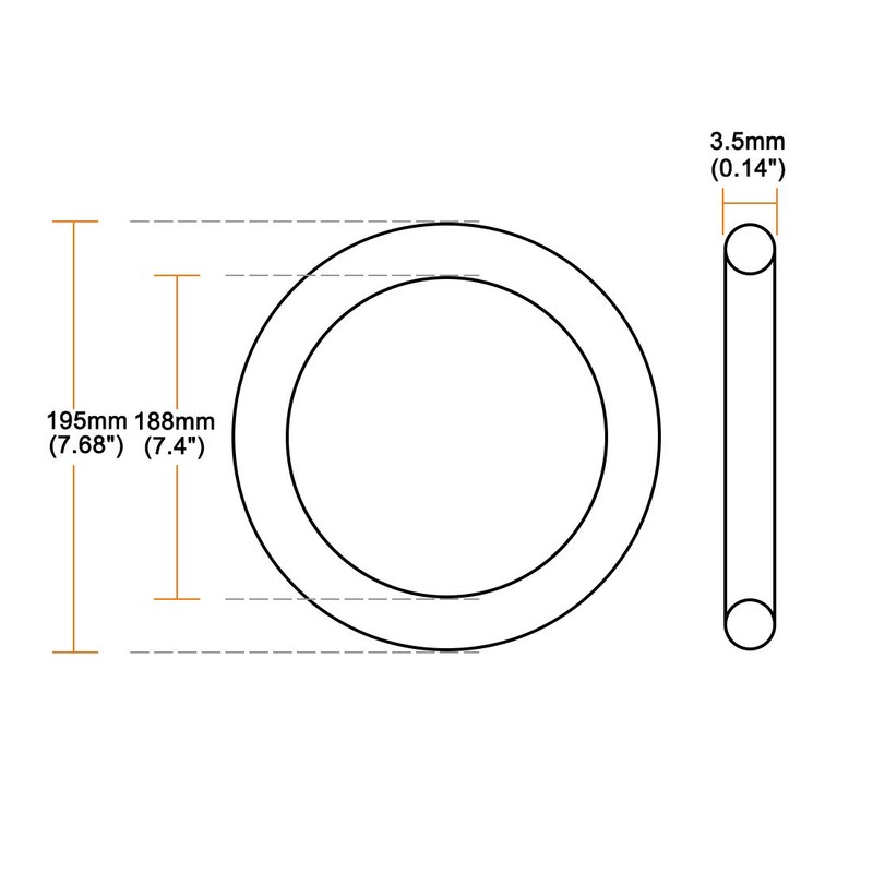 - Size: 195 mm outer diameter, 188 mm inner diameter, 3.5 mm cross-sectional diameter