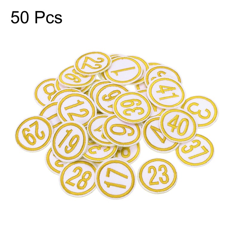 sourcing map Pack of 50 Digital Patch Number Embroidery Yellow Number Fabric ...