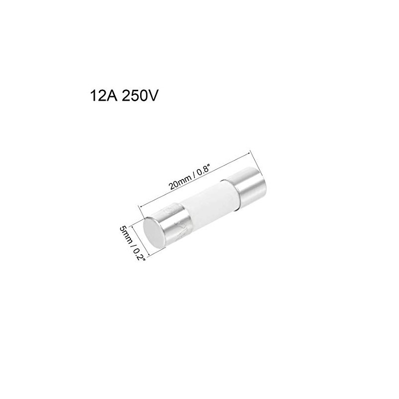 sourcing map Pack of 6 Cartridge Fuses 12A 250V 5x20mm Fast Blow Car Amplifier Energy Saving Bulb