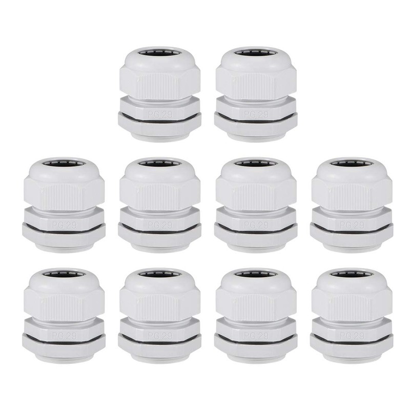 sourcing map PG29 Cable Gland Waterproof Lock Nut with Washer 13 mm - 24 mm Pack of 10 White