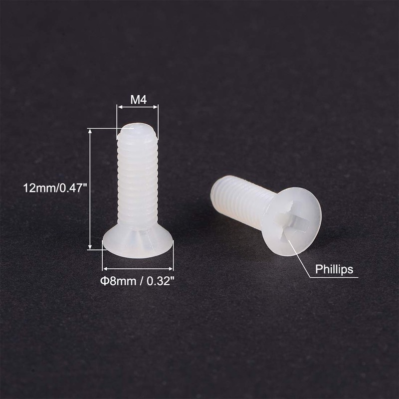 sourcing map Phillips Screws Threaded Nylon Screws M4 x 12 mm Pack of 100