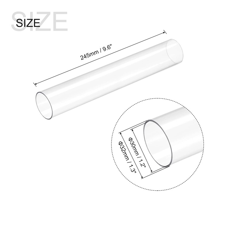 - In the package of: 1pcs x Rigid Round Pipe; Length: 245mm/9.6 inch; Inner Diameter: 30mm/1.2 inch; Outer Diameter: 32mm/1.3 inch; Thickness: 1mm/0.04 inch