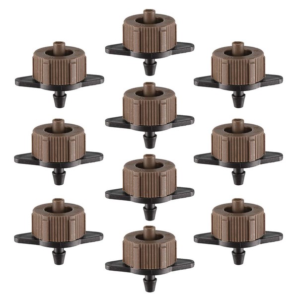 sourcing map Pressure Compensating Dripper 2 GPH 8L/H Emitter for Garden Lawn Drip Irrigation with Barbed Hose Connector, Plastic Black Brown 50pcs