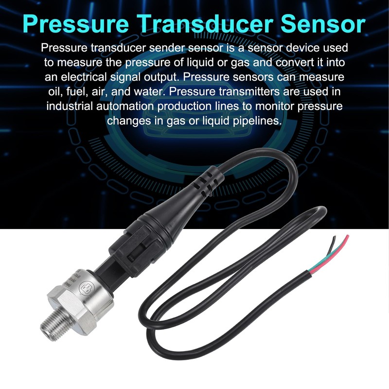- Pressure transducer sender sensor is a sensor device used to measure the pressure of liquid or gas and convert it into an electrical signal output. Pressure sensors can measure oil, fuel, air, and water. Pressure transmitters are used in industrial automation production lines to monitor pressure changes in gas or liquid pipelines. Fuel pressure sensors are used in the fuel supply system of automobile engines to monitor and control the pressure of liquids.