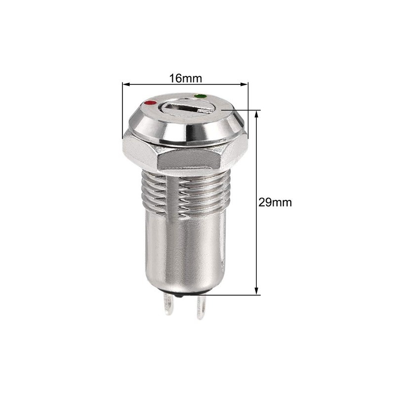 Mounting hole diameter: 12 mm. Total size: 29 x 16 mm (H x D).