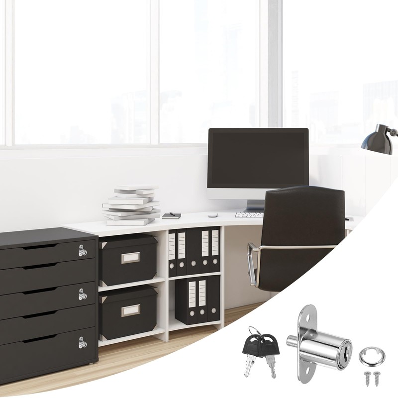 Steps of installation: 1, Use a drill bit to create the holes for the lock barrel and mounting screws. 2, Insert the lock barrel through the hole from the exterior side of the cabinet. 3, Secure the back plate or mounting plate on the interior side of the cabinet.