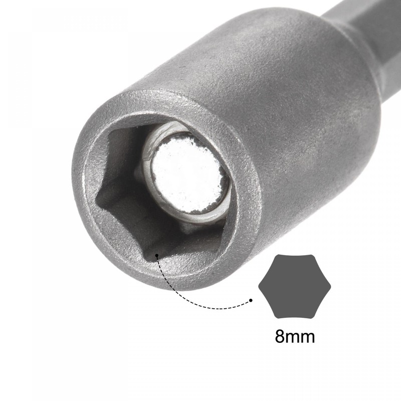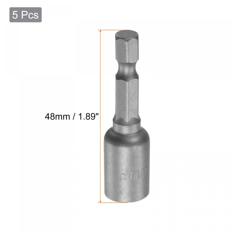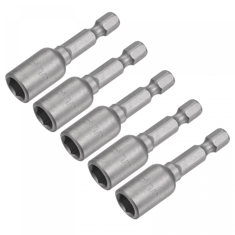 sourcing map Quick-Change Nut Driver Bit, 1/4" Hex Shank 8mm Magnetic Nut Setter Drill Bits, 1.89" Length, Metric 5 Pcs