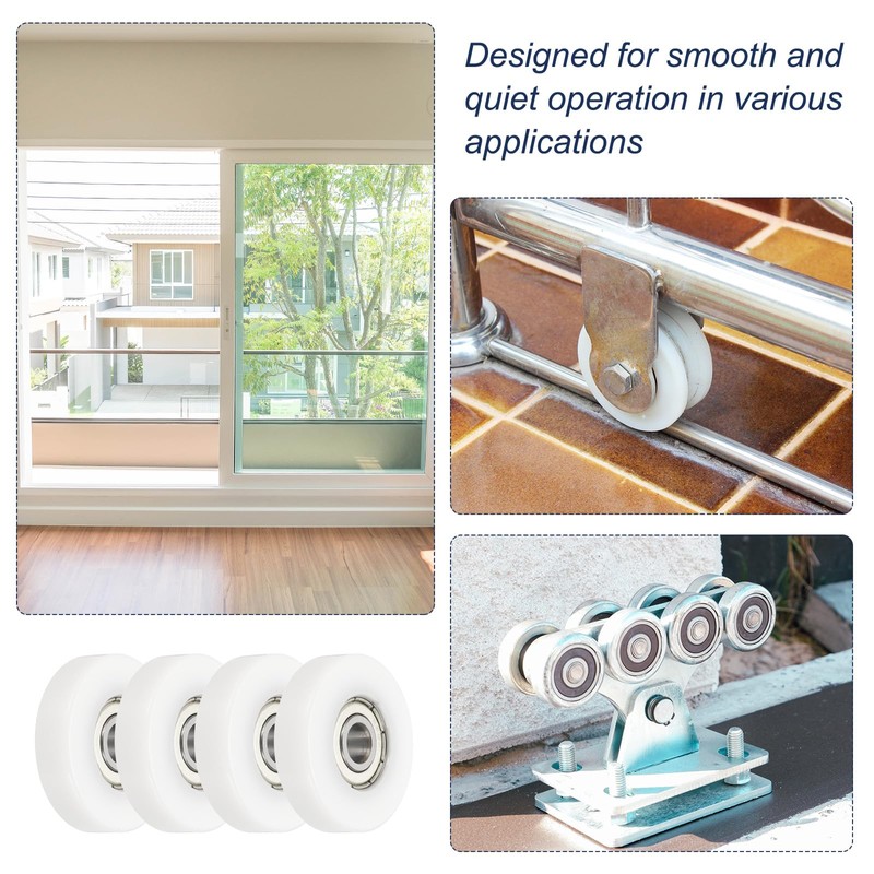 sourcing map Roller Idler Bearing Pulley, 8 x 40 x 10mm Plastic Sliding Conveyor Nylon Wheel Track Wheel for Furniture Hardware Accessories Mobile Door White, Pack of 4