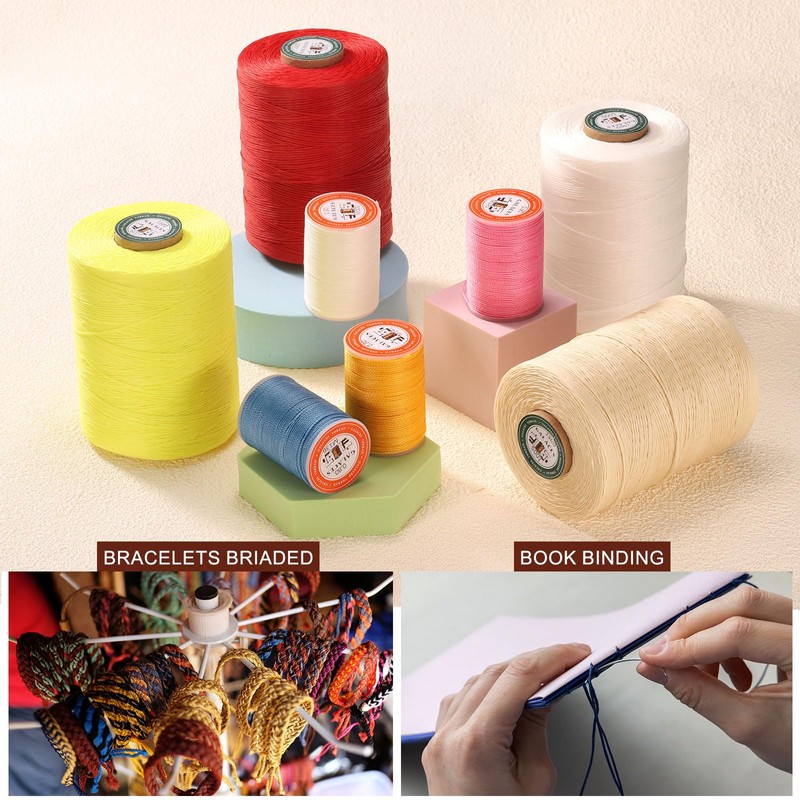 • [ Ultra-Durable and Vibrant Color ] - Experience great strength, durability, and versatility with our 3-ply waxed polyester thread. Designed to withstand high temperatures and resist fading, this tightly woven thread offers a smooth, even wax finish that doesn’t flake or stick to your hands. Its robust construction ensures it can handle rigorous use and frequent washing without losing its vibrant color.
