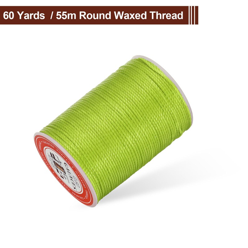 sourcing map Round Leather Sewing Waxed Thread, 55m / 60 Yards Wax Polyester String, 0.8mm Waxed Stitching Cord for Leather Crafts, Bookbinding, Bracelets Braided, Bright Green